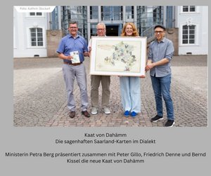 Die „Kaat von Dahämm“ ist eine Mundart-Karte, welche zunächst für jeden Landkreis im Saarland und dem Regionalverband als Kreiskarten veröffentlicht wird und alle Orts- und Stadtteile der Landkreise / des Regionalverbandes in ihrer regionaltypischen Aussprache abbildet. Zusätzlich lassen sich auf der Karte Zeichnungen zu regionalen Sagengeschichten, ortsbezogenen Geschichten und lokalen Sehenswürdigkeiten finden, abgerundet wird das Gesamtbild mit auf der Ministeriumsseite veröffentlichten Audioaufnahmen sowie einer Begleitbroschüre mit Erklärungen zu den abgebildeten Zeichnungen. Bis dato existieren bereits Karten für den Landkreis Saarlouis, den Landkreis Neunkirchen und den Regionalverband Saarbrücken.