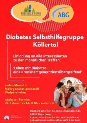 Diabetes Selbsthilfegruppe Köllertal - j eden Monat, jeweils mittwochs, im Mehrgenerationentreff Walpershofen, 17 Uhr, kostenfrei